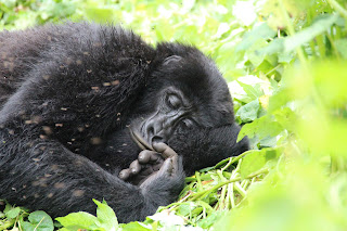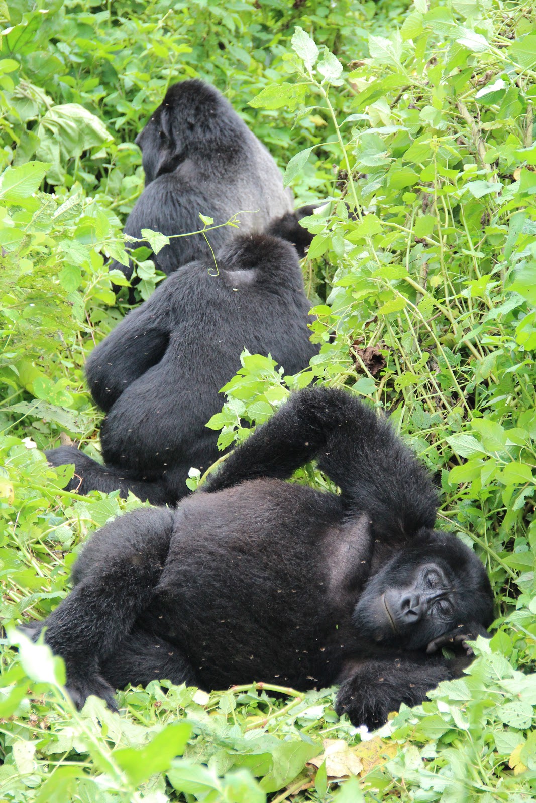 We were fortunate enough to see between 10 to 15 of the 17 gorillas in the Rushegura group, including the silverback and a tiny baby (hilarious). They are startlingly desensitized to humans and it often seemed like were posing for the cameras. A young gorilla walked passed Erin and me only about 5 ft away, which shows how comfortable they can be around humans, and I had to scramble to get some video of this and still enjoy the moment. At least the government limits their exposure to humans to 8 visitors per day for no more than 1 hour, which was plenty.