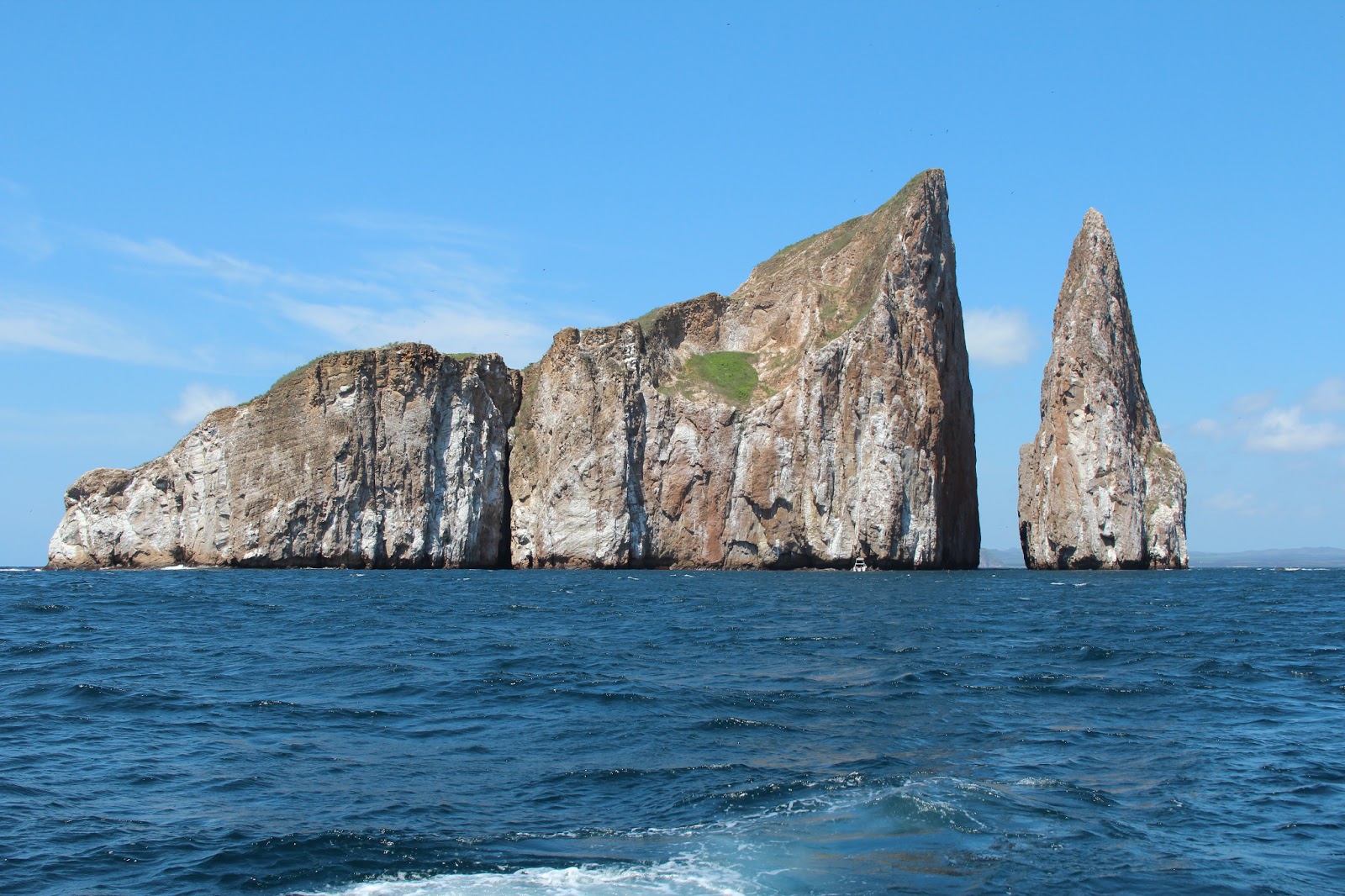 After the beach and a small repair on one of the boat motors, we made it to Kicker Rock or Leon Dormido as known by the locals. This is a rock formation that juts out of the ocean several thousand feet off the coast. We were able to snorkel through a channel between two of the towers and saw a shark or two and several sea turtles. It was a bit unnerving for both of us since this was the first time we had been snorkeling and not been able to see the bottom. This, along with the 6-10 ft rise in water near the rock formation made it a rather difficult area to snorkel in, but it definitely helped prepare us for our first scuba dive in a week or two.
