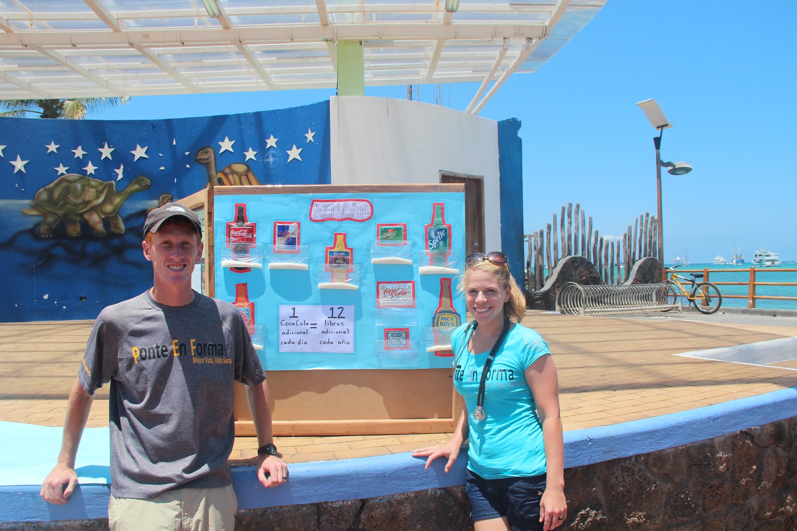 Sam and I got to work just a few days after arriving in the largest town in the islands, Puerta Ayora. Being as handy as he is, Sam was sent to help with public works for the first couple weeks. The park near the peir in town, called San Francisco park, was getting a make-over, so Sam helped to spruce it up. Along with four medical students from Oxford, I have been helping out with the weekly health screenings where we measure height, weight, waist circumference, blood sugar, and blood pressure. If they have an abnormal result, we often sent them straight to their doctor, who they rarely see.